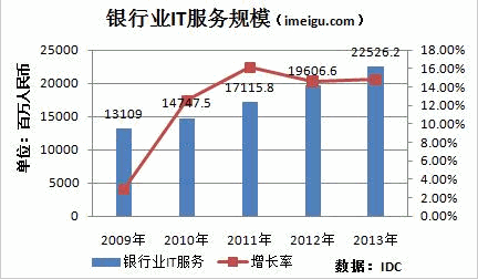IDC的統(tǒng)計(jì)數(shù)據(jù)還顯示,銀行業(yè)IT服務(wù)市場規(guī)模將從2009年的131億元增長到225億元;實(shí)現(xiàn)14.5%的復(fù)合增長。