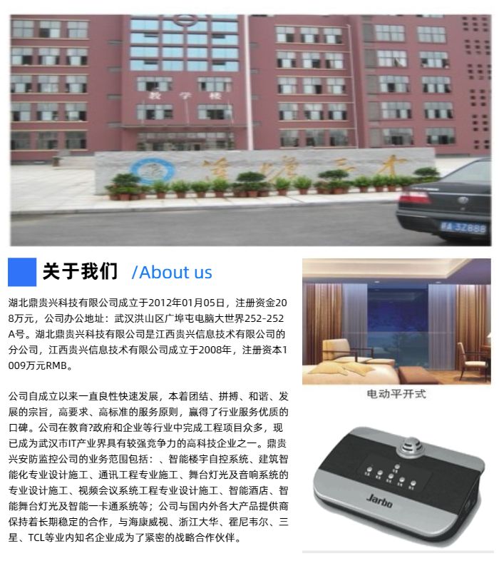 監(jiān)控攝像頭安裝-武漢監(jiān)控攝像頭-鼎貴興由湖北IT公司提供。湖北IT公司是一家從事“鴻蒙智能家居、華為智能家居、華為智能鎖、安防監(jiān)控、智能停車”的企業(yè)。公司秉承“誠信經(jīng)營,用心服務(wù)”的理念,為您提供更優(yōu)質(zhì)的產(chǎn)品和服務(wù)。歡迎來電咨詢!聯(lián)系人:羅經(jīng)理。