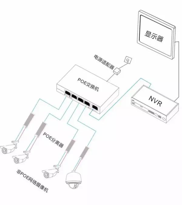 2、交換機支持POE,終端不支持POE