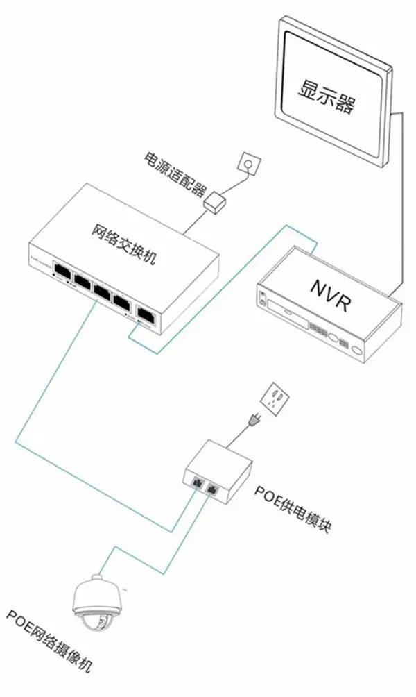 這種方式,PoE交換機通過網線直接連接支持PoE供電的無線AP和網絡攝像機。這種方法是最簡單的,但是還需要注意以下兩點: