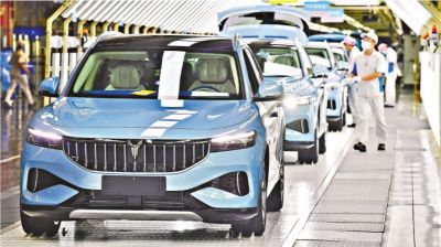 6月30日,智能新能源SUV藍(lán)途FREE在武漢經(jīng)濟(jì)技術(shù)開發(fā)區(qū)藍(lán)途汽車智能制造基地生產(chǎn)線上。